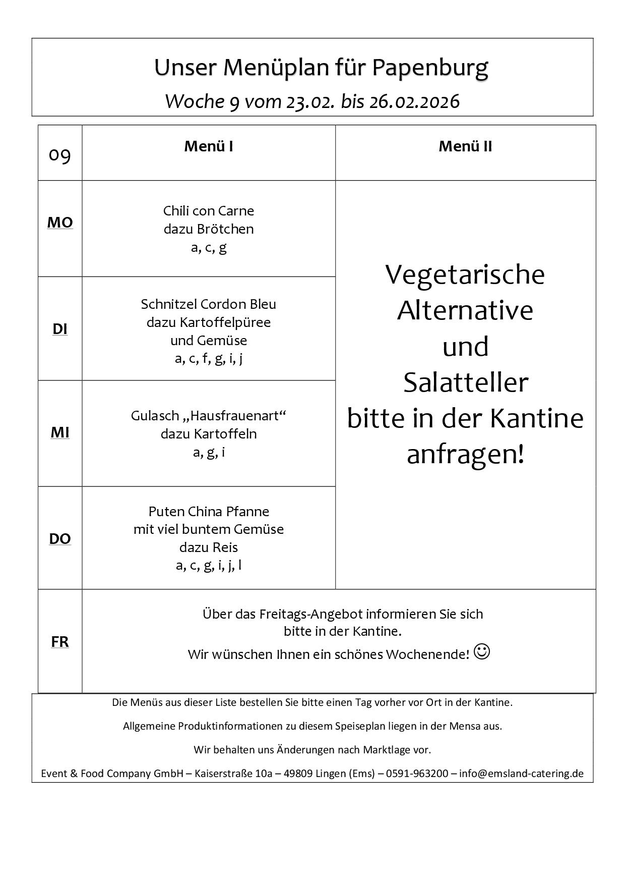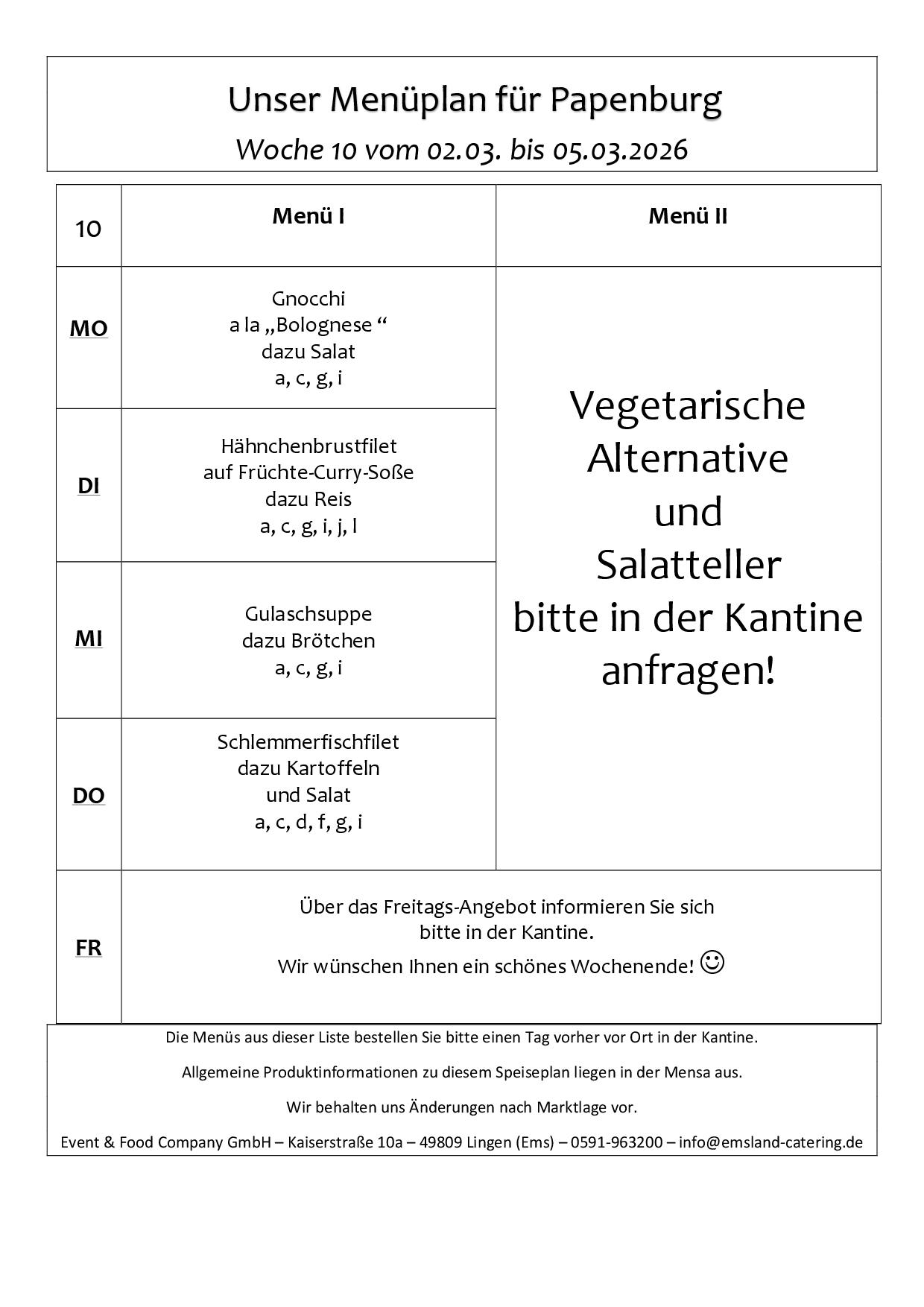 Hier finden Sie unsere aktuellen Menüpläne für das Gymnasium Papenburg.